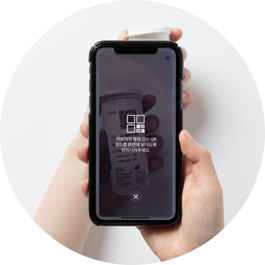 음성 안내에 따라 QR 코드를 스캔한 후 스마트폰을 뒤집어 카트리지를 끼웁니다.
